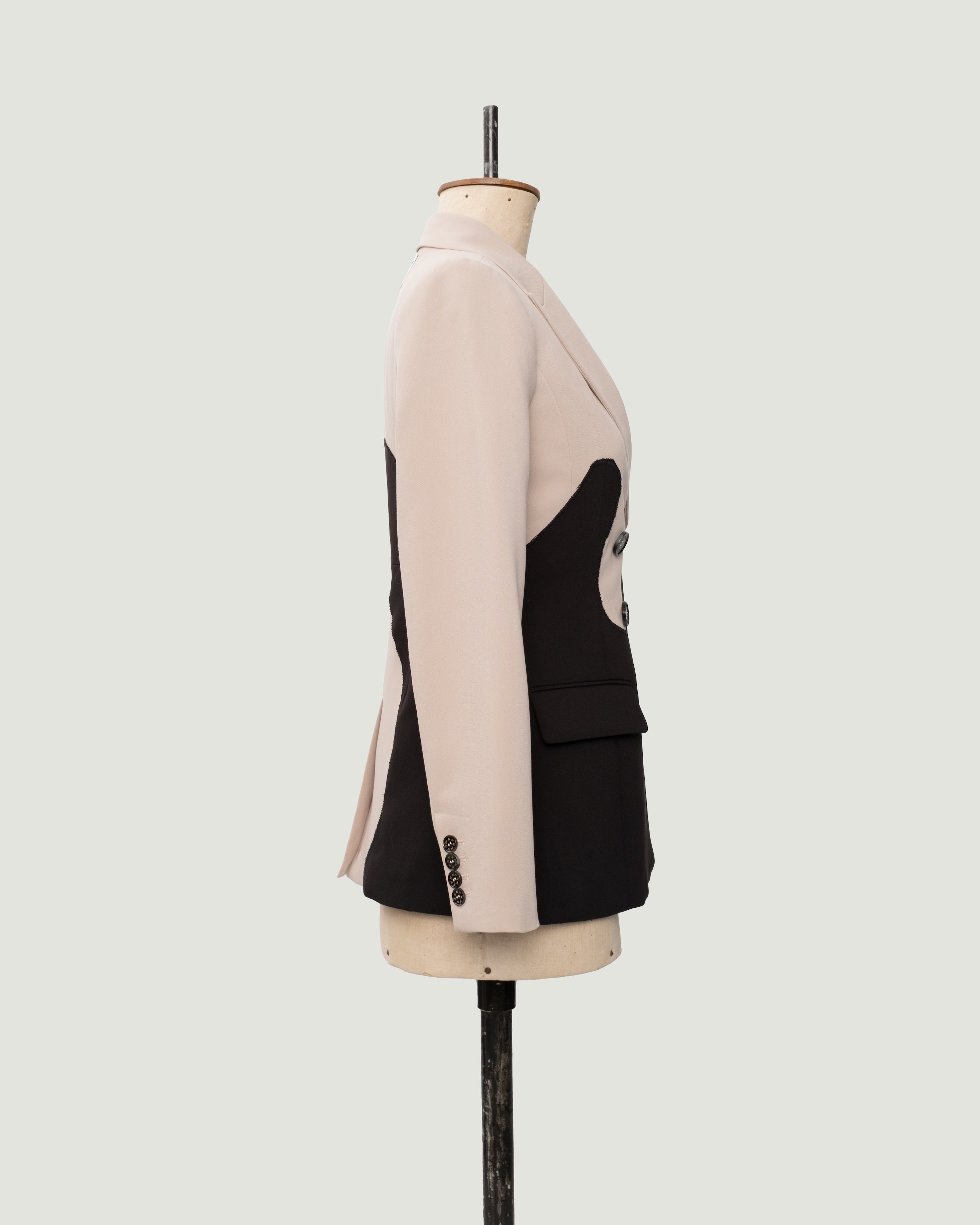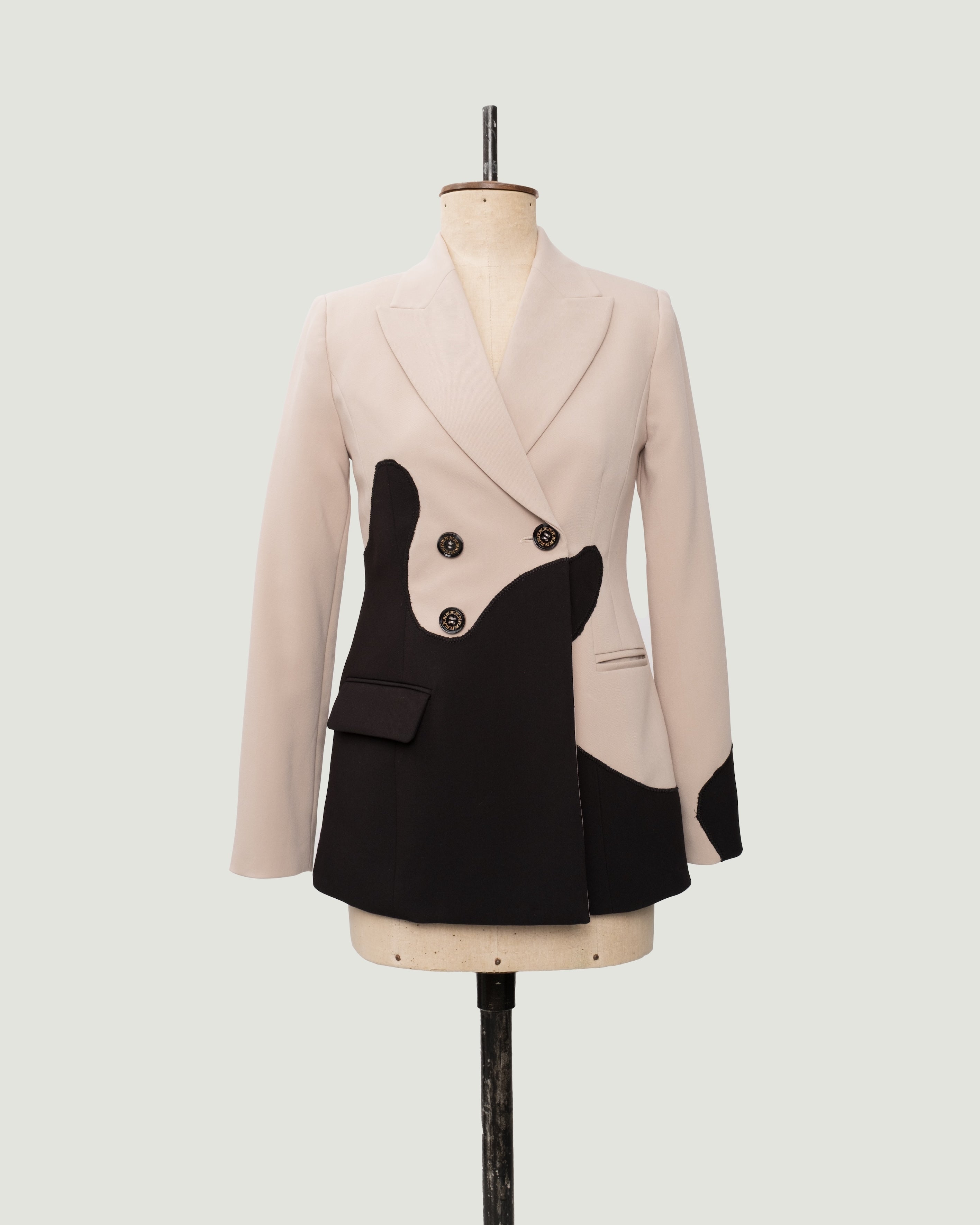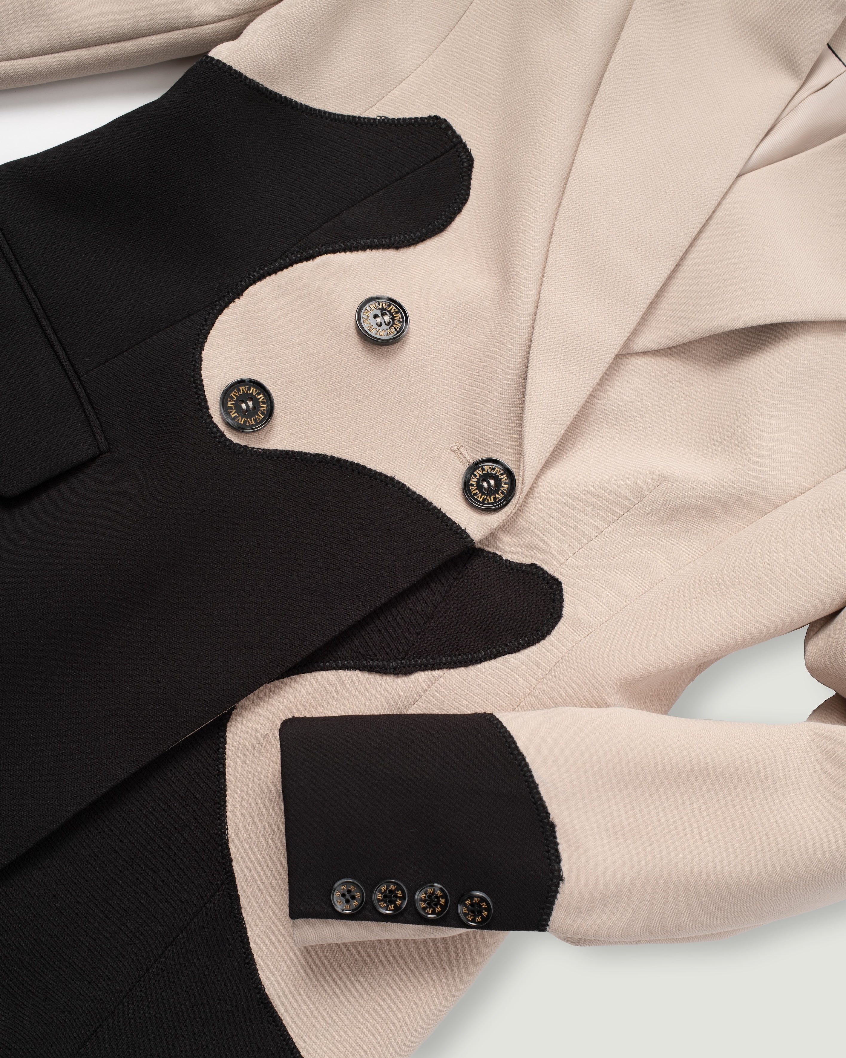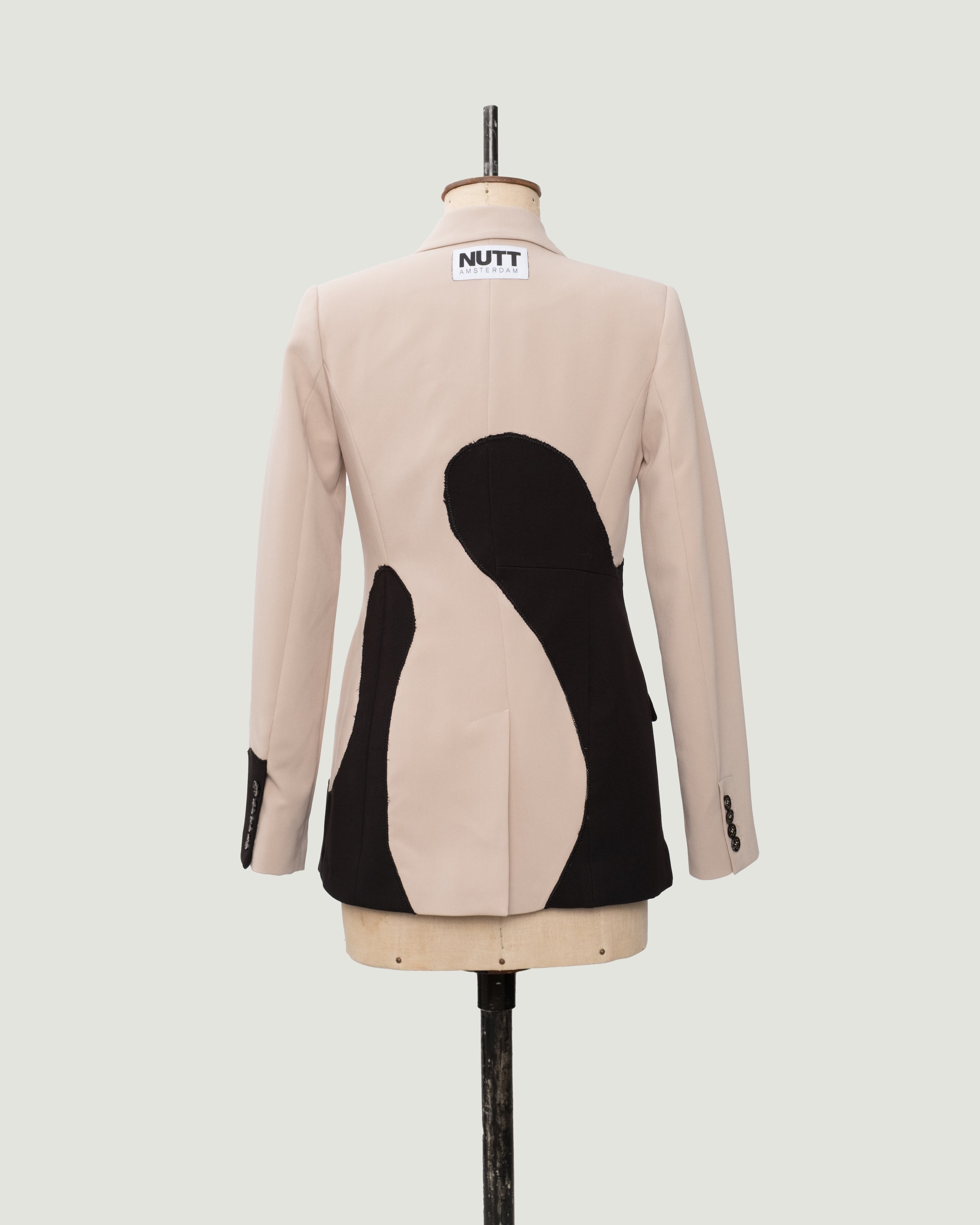 Coffee tones, chocolate waves, FLOW moves with attitude. This tailored blazer from rude returns blends softness with strength: elegant in shape, but with an edge that lingers. The wavy brown appliqué add motion, rhythm, and character.