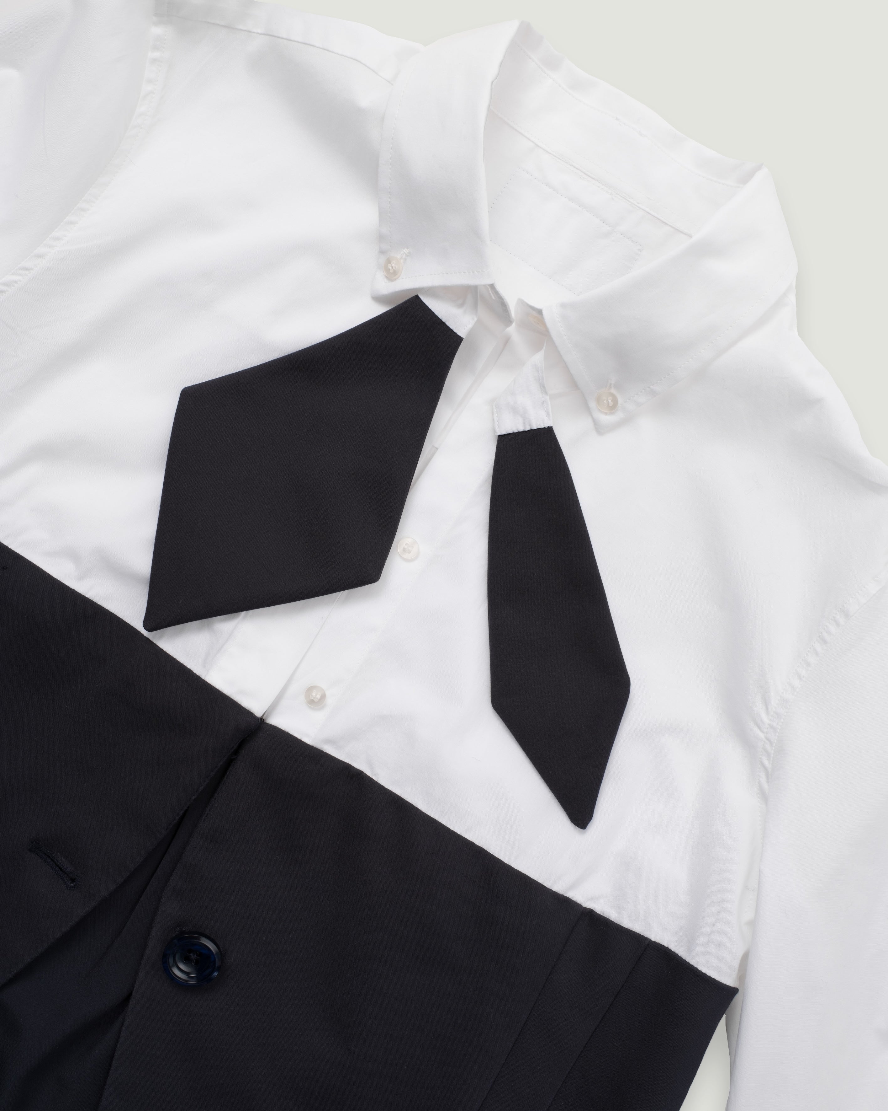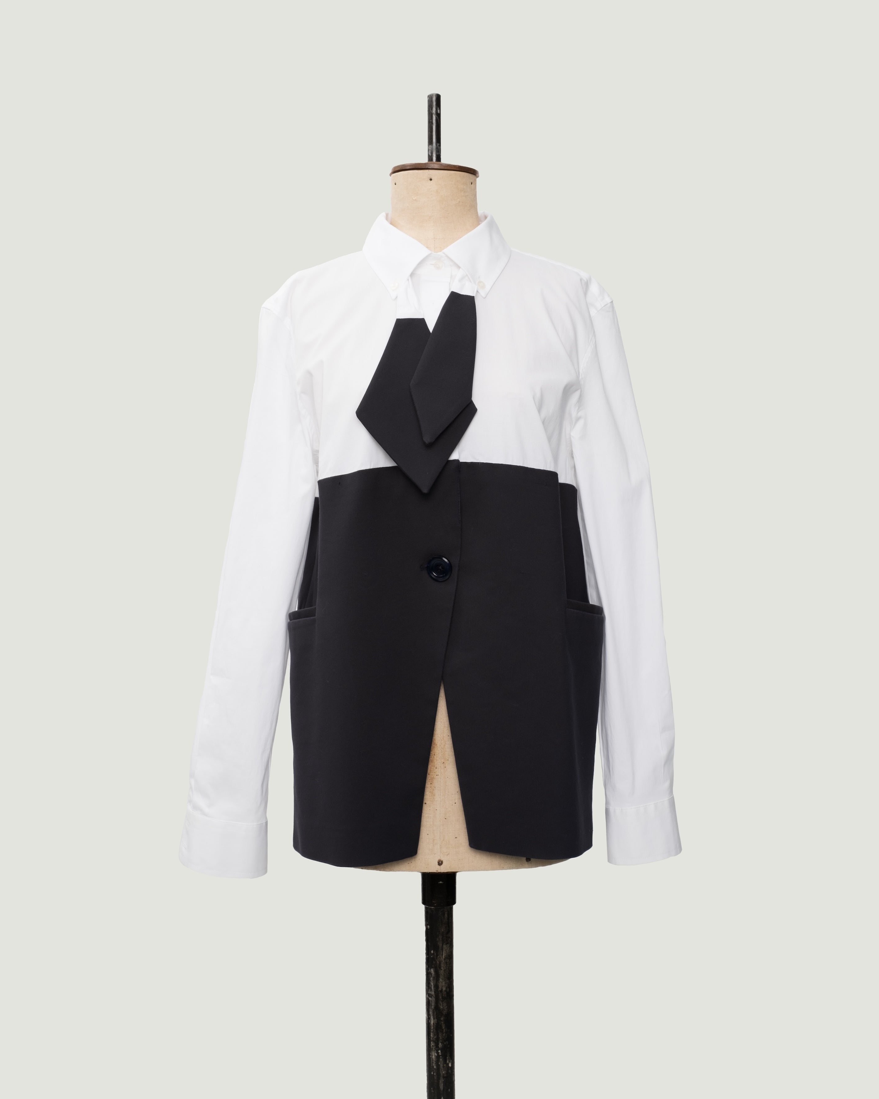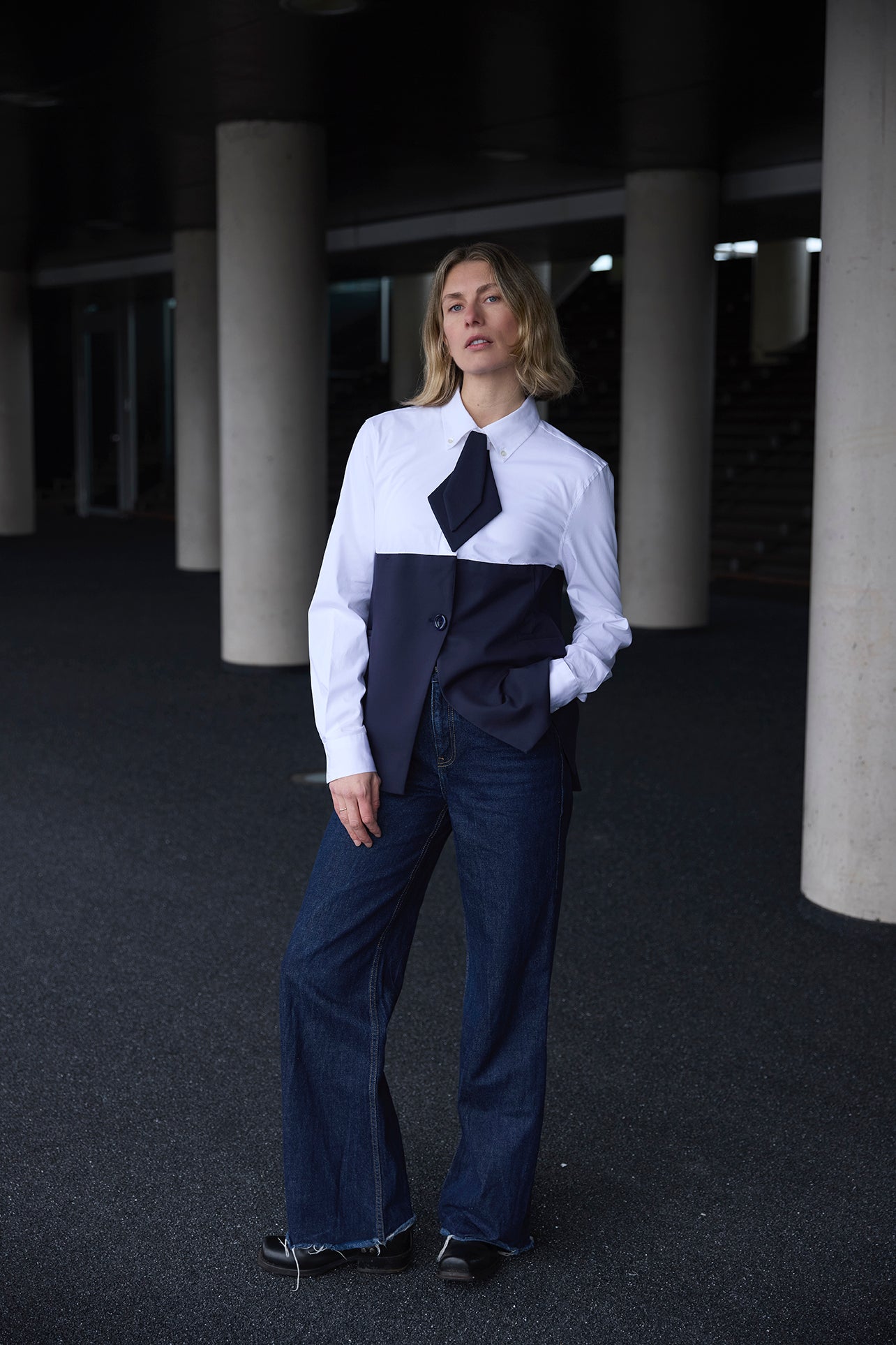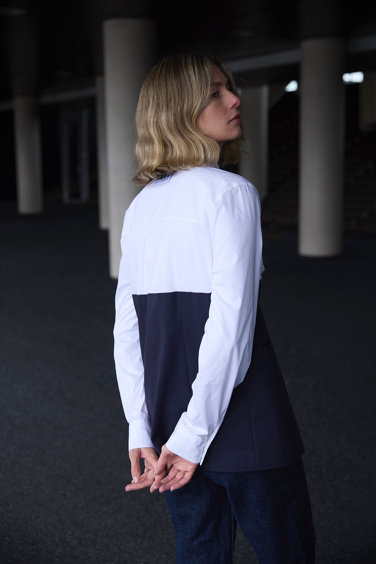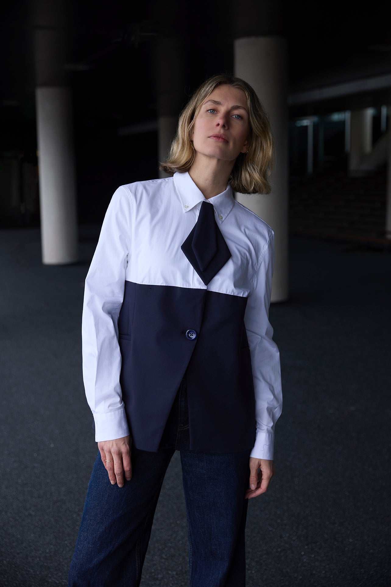 HARVARD is the perfect rude return blend of classic and bold. A crisp white cotton shirt meets a dark blue blazer with open pockets, a subtle statement that works both smart and casual. Wear it with or without a tie, open or closed, and make it your own.