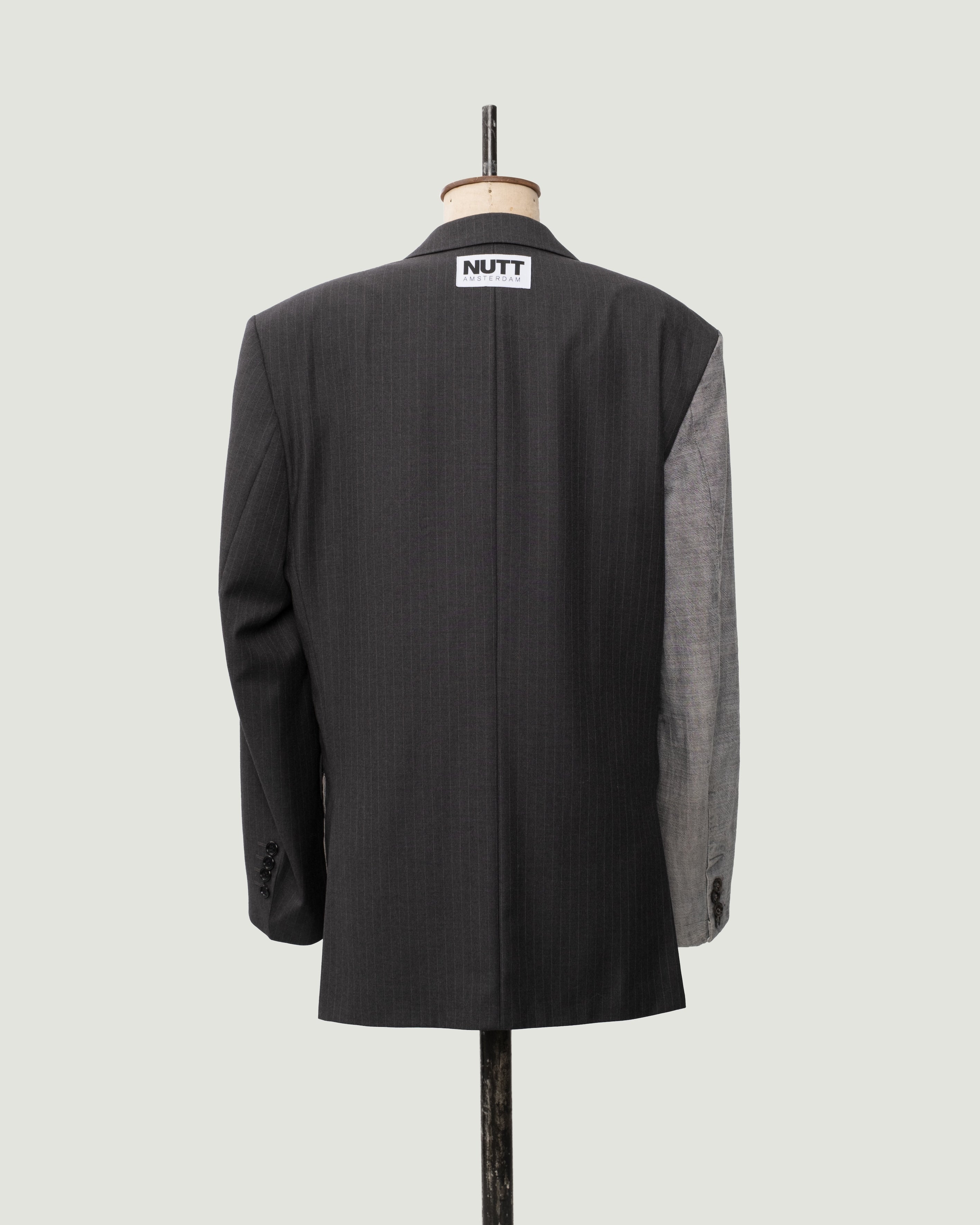 LION is bold, edgy, and unapologetically NUTT. A vintage grey blazer meets a pre-loved cotton jacket, creating a unique mix of textures and attitude. Sturdy pockets and an intentionally cut sleeve give character, while the straight cut keeps it effortlessly wearable.