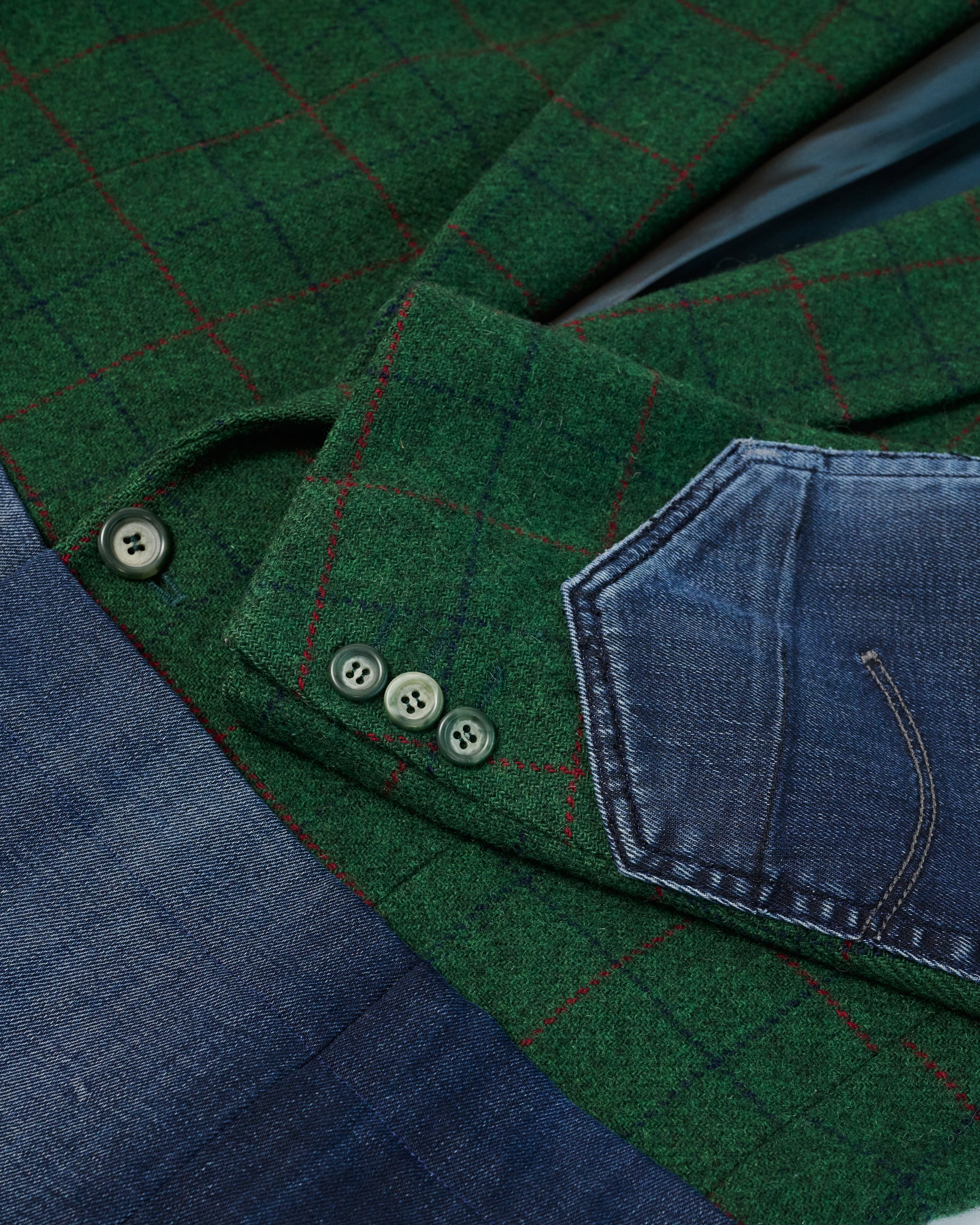 HARRIS is een samengesteld design uit een nooit-meer-gedragen groene blazer in een tweet en een gedumpte donkere jeans. Deze blazer heeft vier grote insteekzakken aan de voorklant en twee kleine pockets op de mouwen. Je draagt hem casual of chic en kan lekker oversized, hij is voor iedereen.