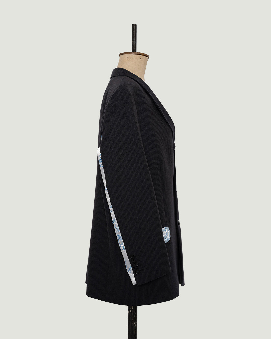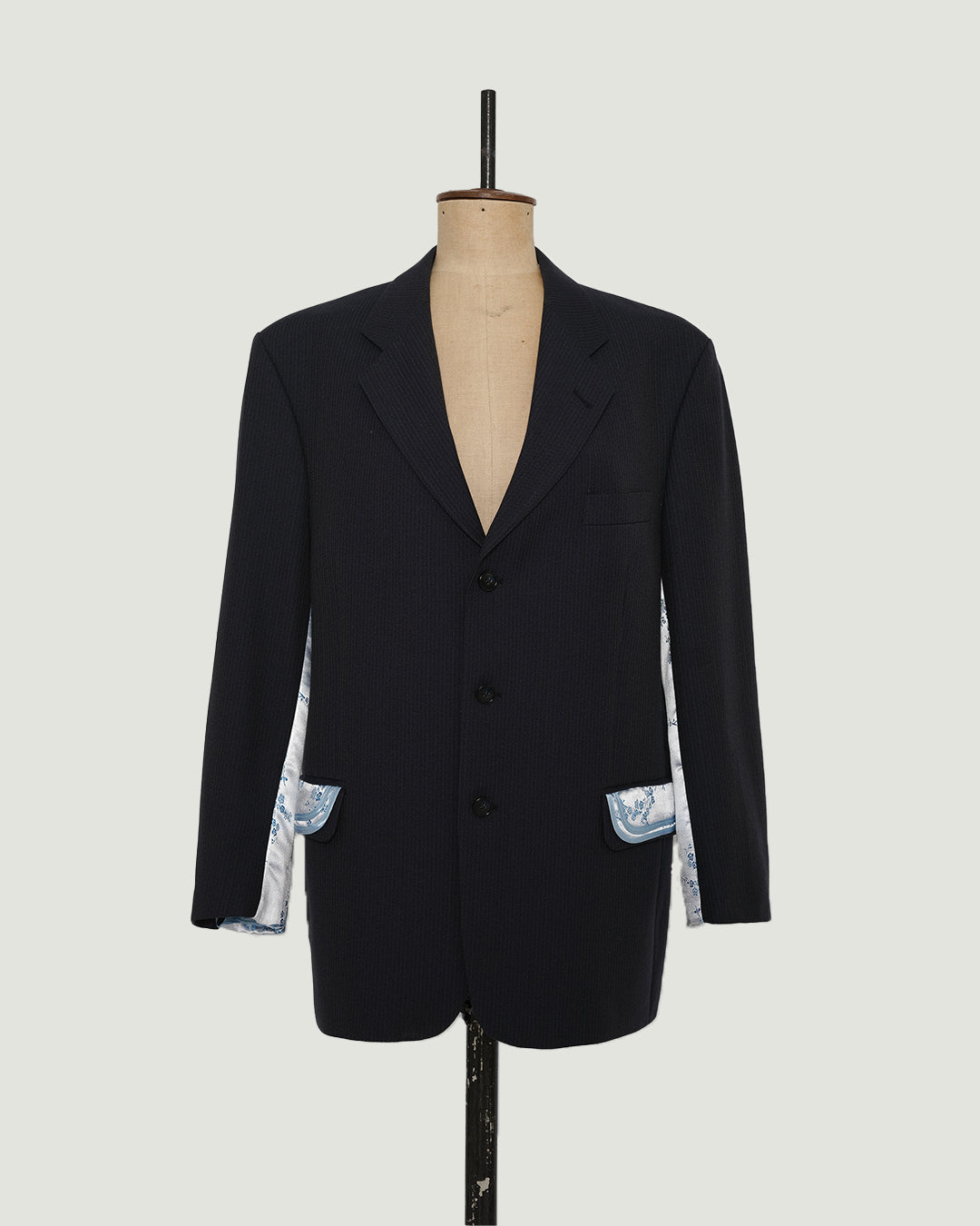 JAPAN is een samengesteld design uit een afgedankte donkerblauwe blazer en een gedumpte Aziatische pantalon. De blazer heeft fijne details op de zakken en sluit ruim aan.