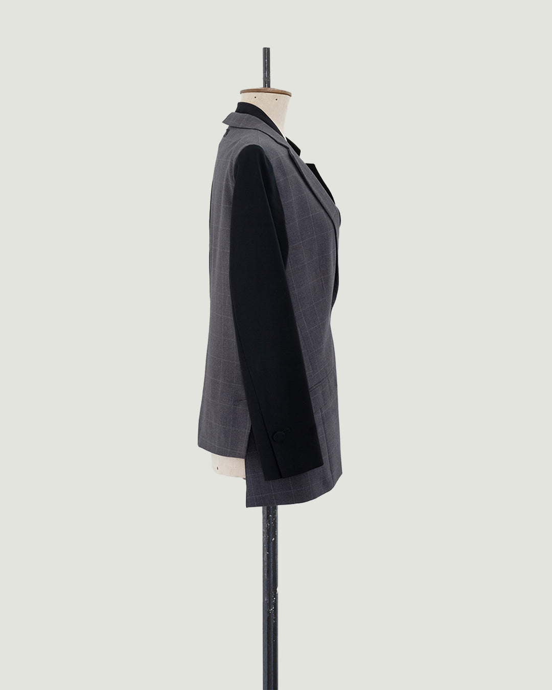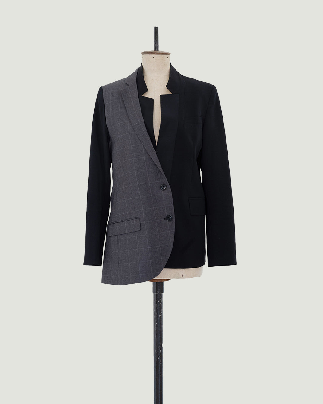 ORGANIC is een samengesteld design uit een nooit-meer-gedragen recht getailleerd model gecombineerd met een gedumpt model in organisch, zachte vorm. Deze blazer sluit a-symetrisch. Je draagt haar passend, zowel casual of classy.