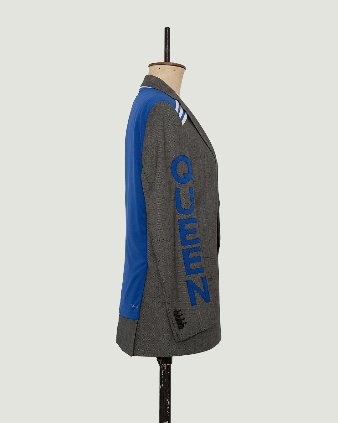 QUEEN is een samengesteld design uit een nooit-meer-gedragen grijs getailleerde blazer en een gedumpte blauw sportjack. De stoere blazer sluit mooi aan en draag je zowel casual als chique.