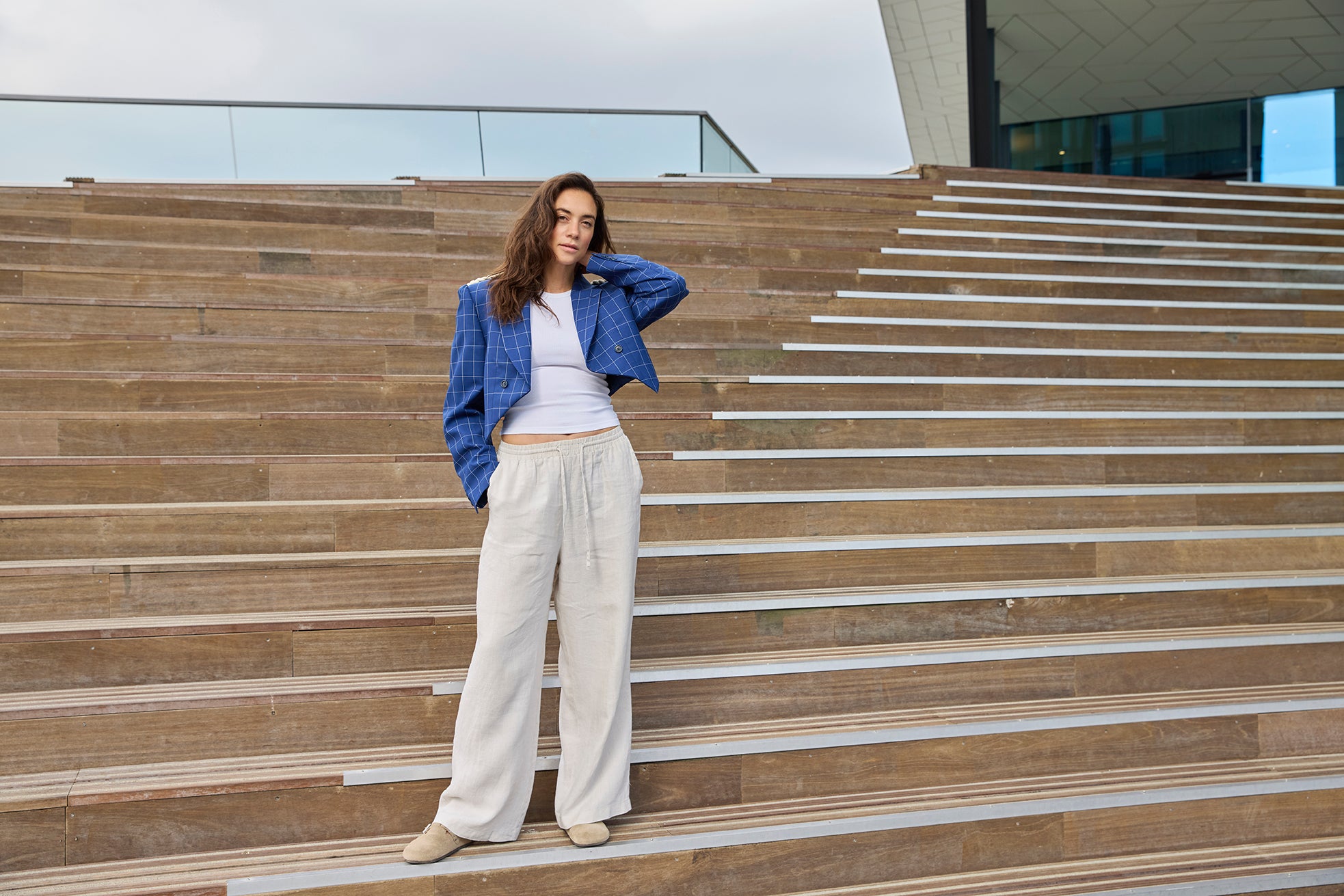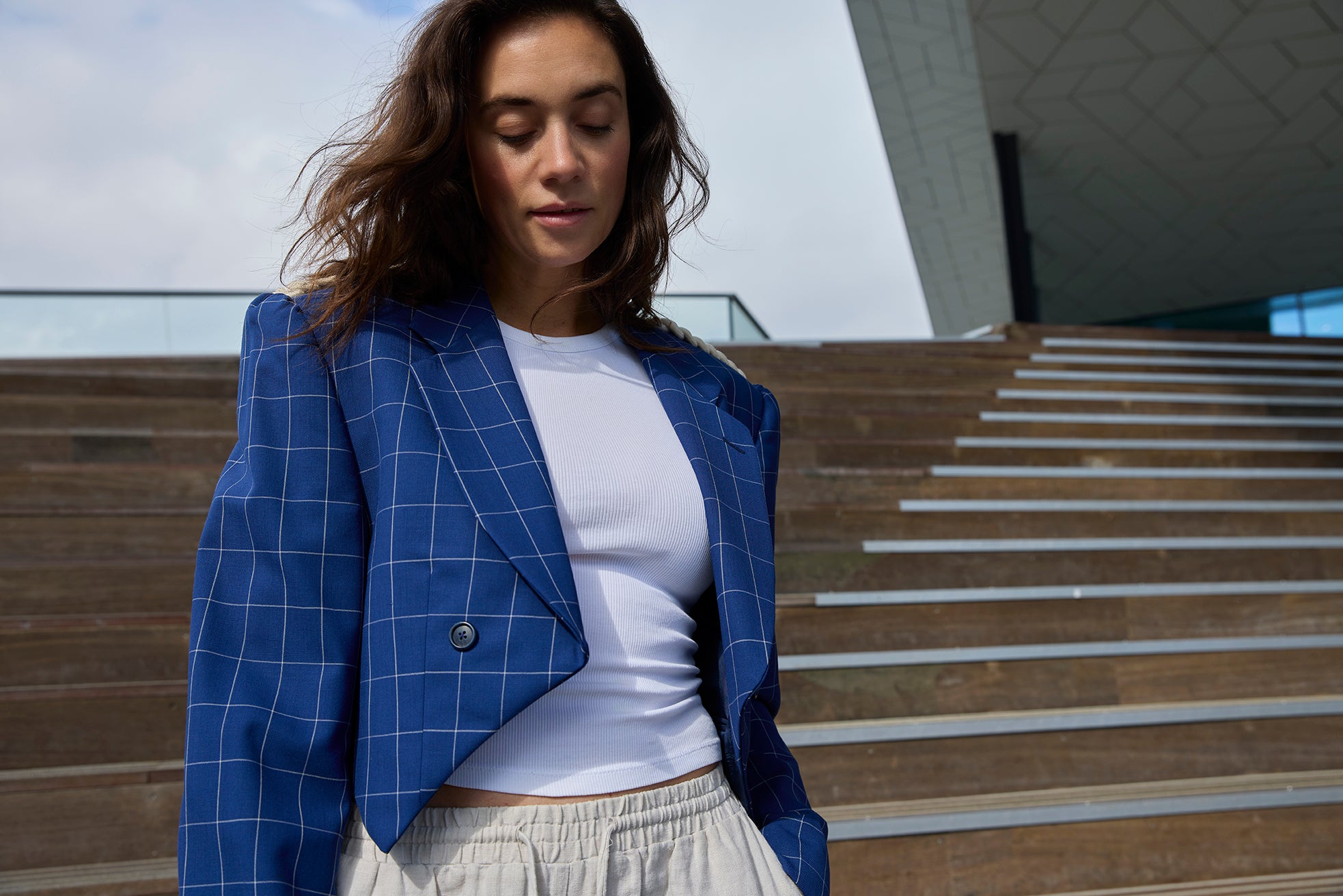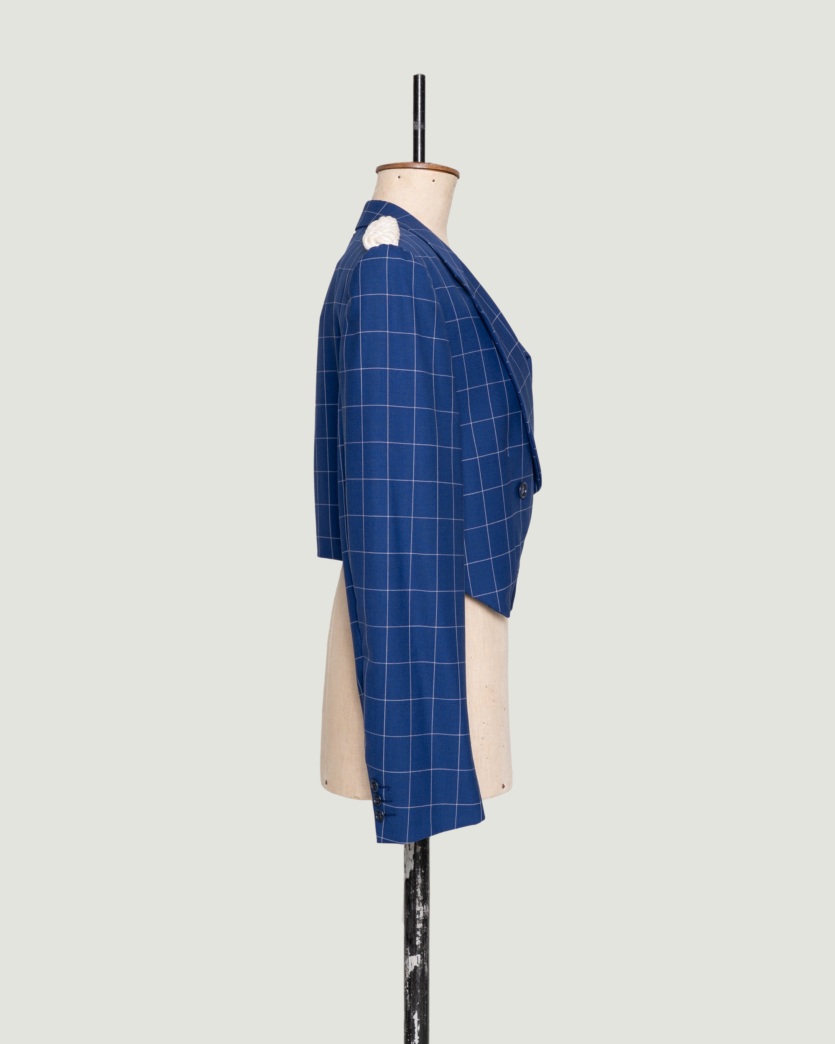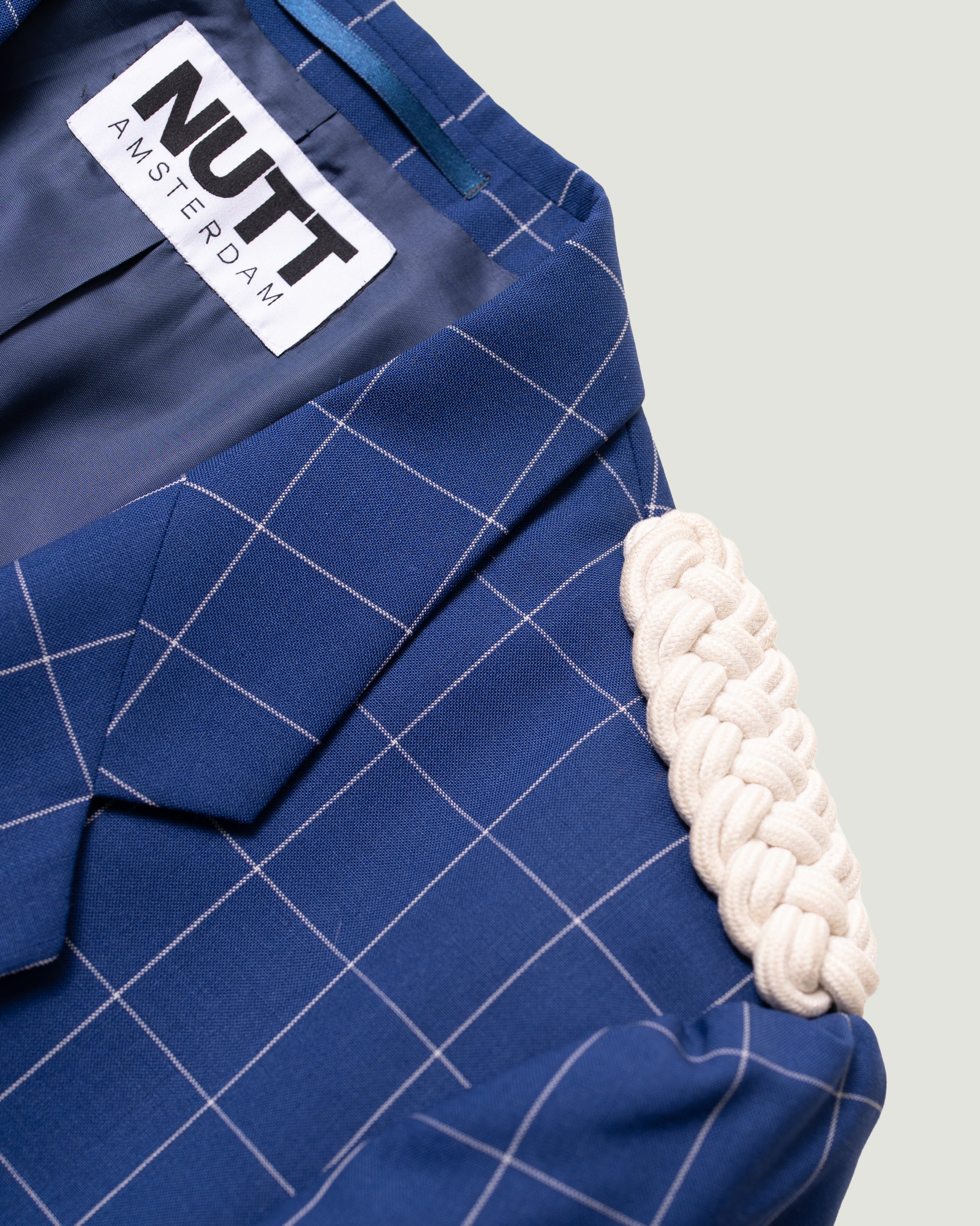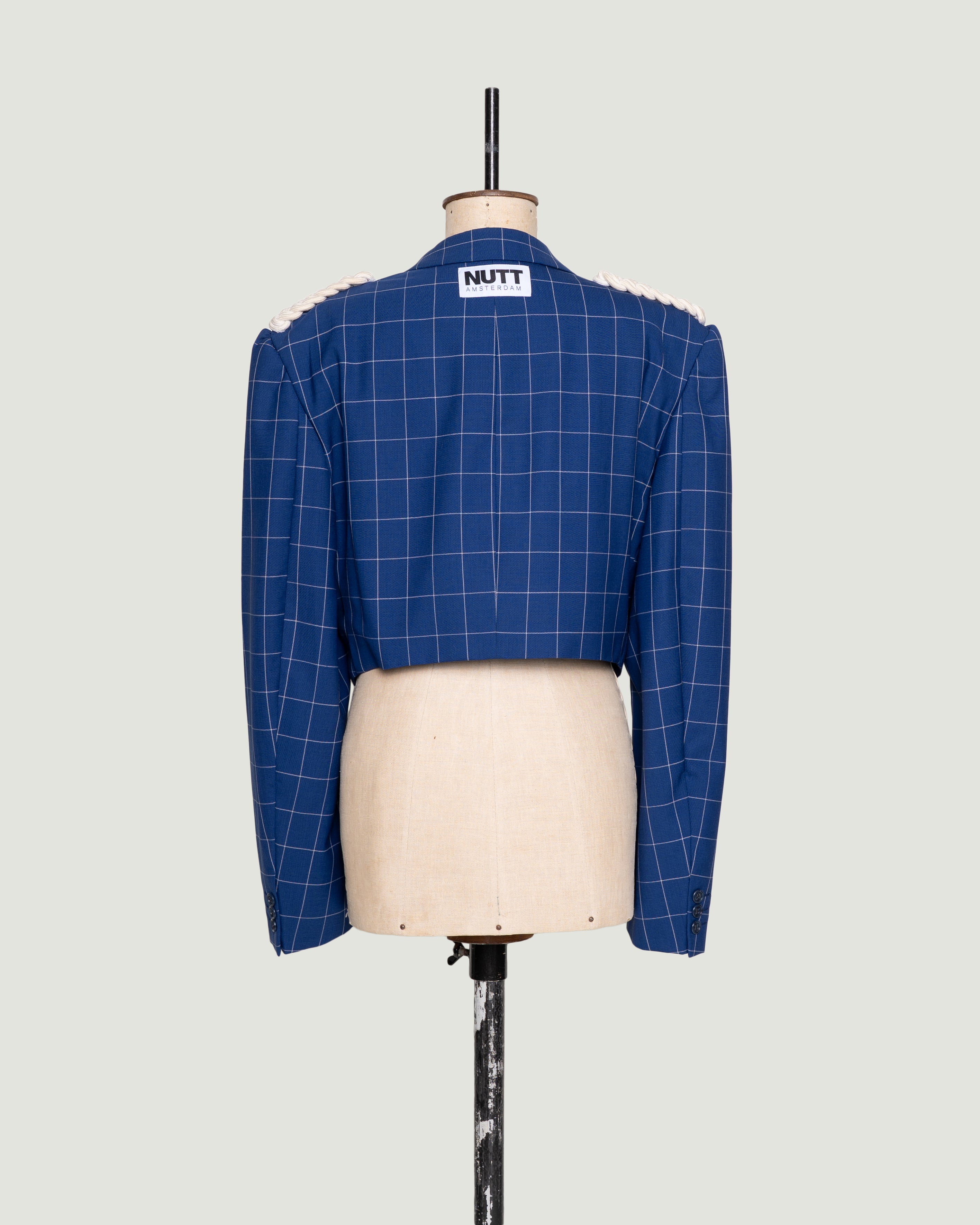 PARADE is een uniek design, samengesteld uit een nooit-meer-gedragen blauwe blazer in fijn geweven ruit en stoere epauletten van een verloren paradekostuum. De blazer valt lekker los, heeft lange mouwen en wordt open gedragen voor een relaxte look. Met drie binnenzakken mix je moeiteloos casual met chique.