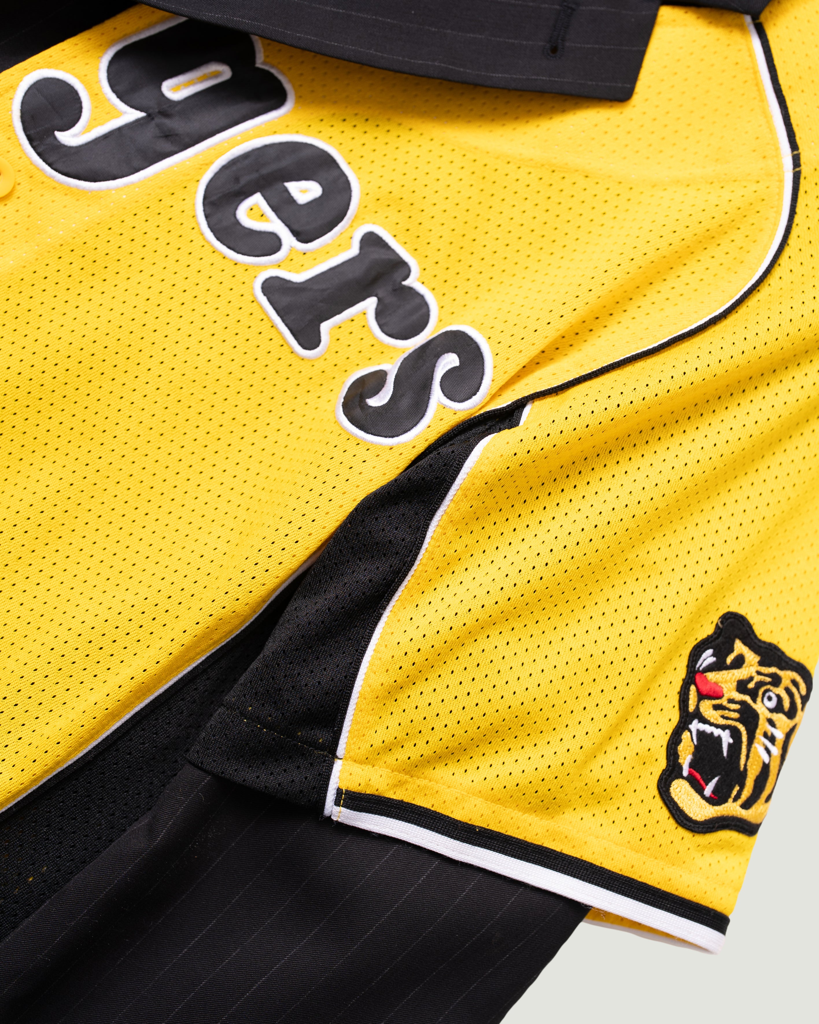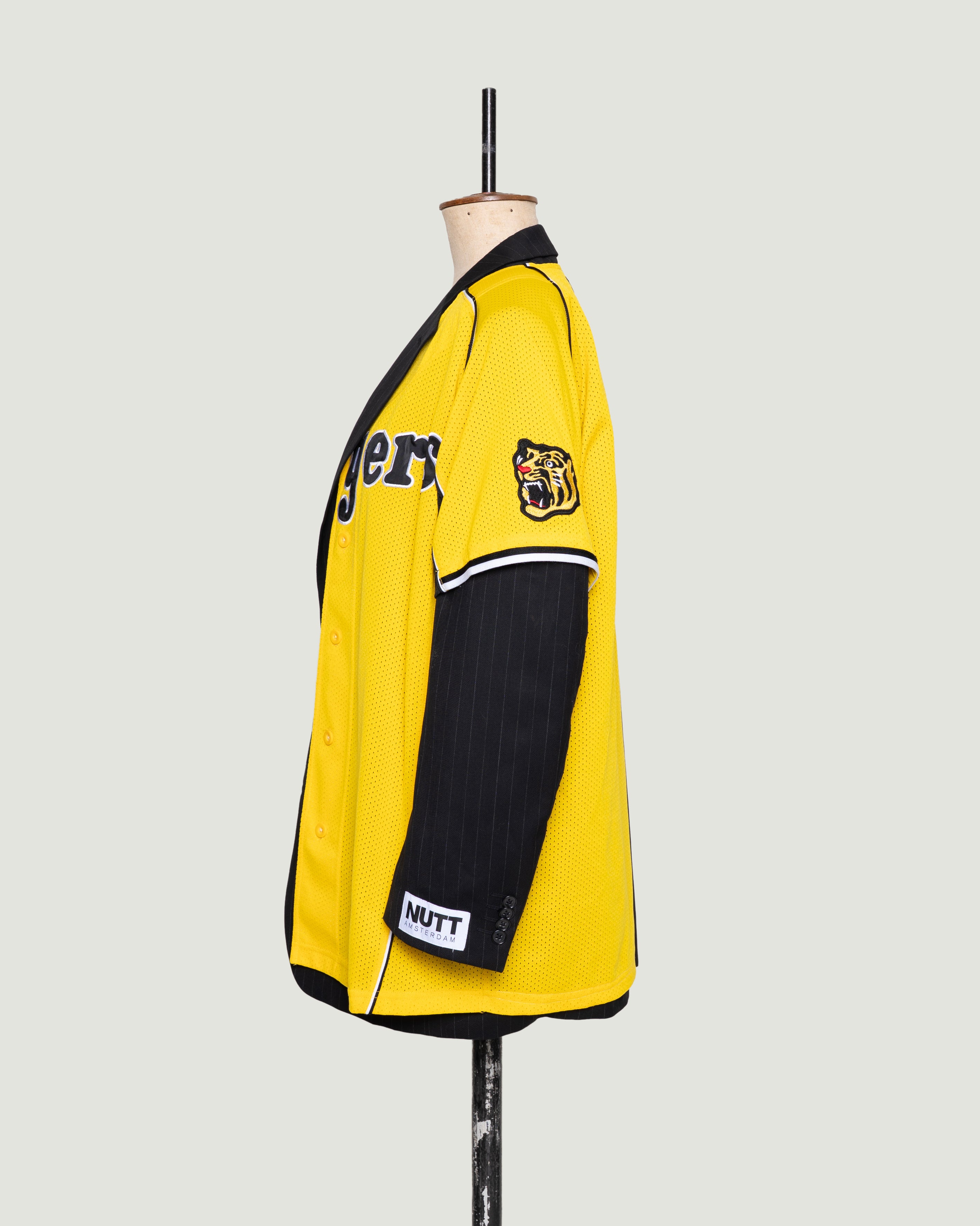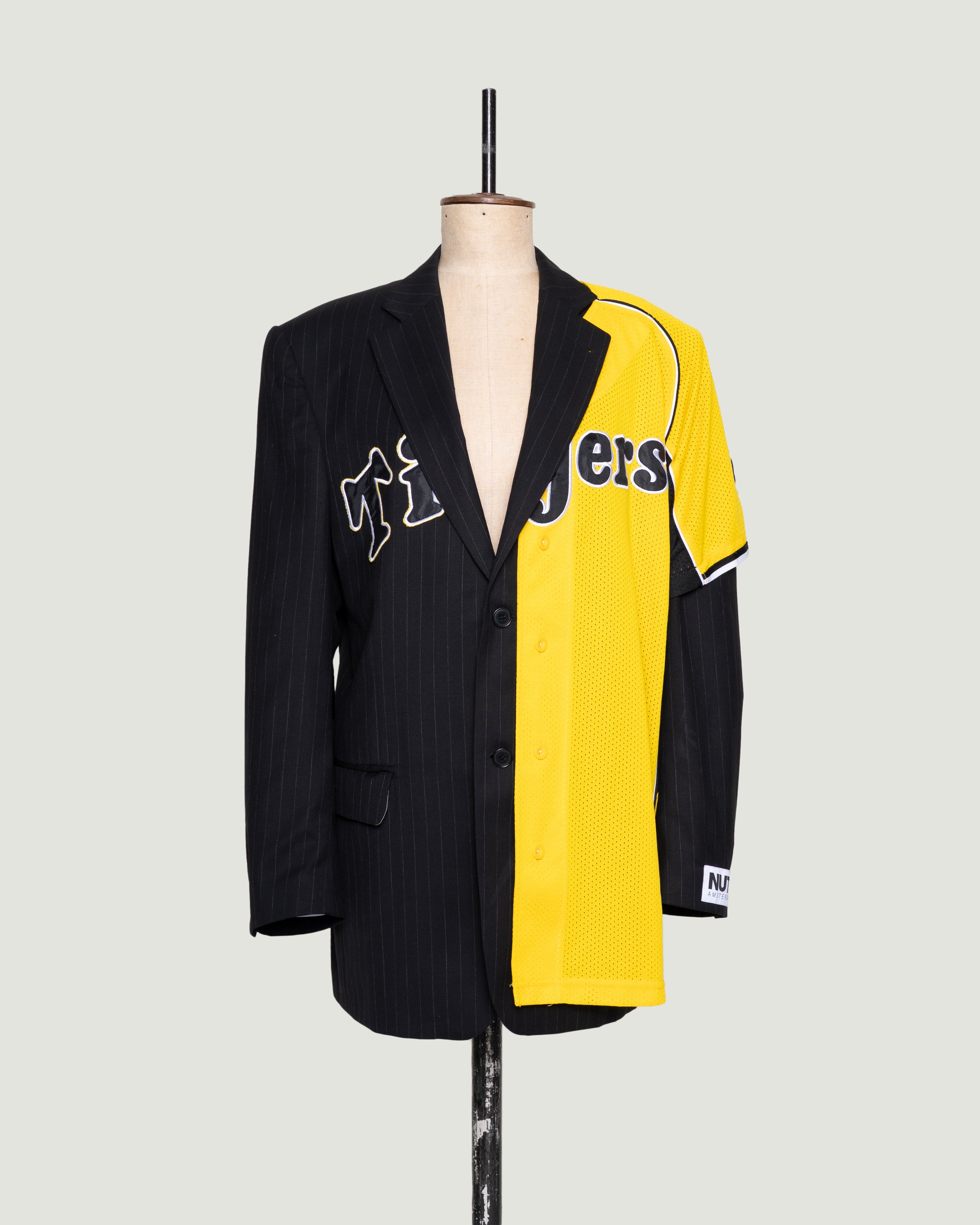 TIGERS is een uniek design, gemaakt van een zwarte afgedankte blazer en een gedumpte baseballshirt. Dit sportieve jasje laat je zeker opvallen, maar je kunt het ook rustig dragen als je liever niet té veel in de spotlight staat. Dat is aan jou.